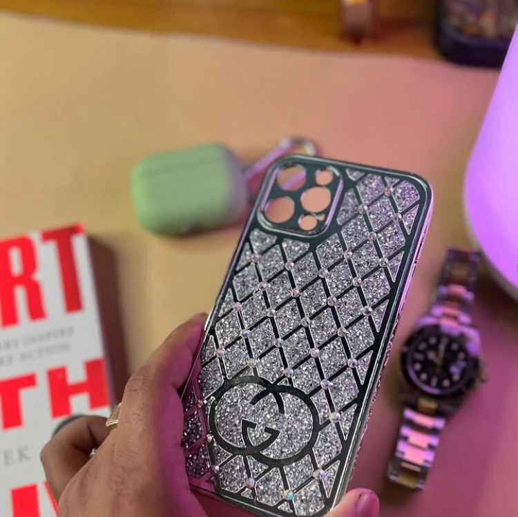 GUCCHI CASE WITH 2 COLOUR OPTION SILVER AND GOLDEN AVAILABLE IN MY APPLE CASE.